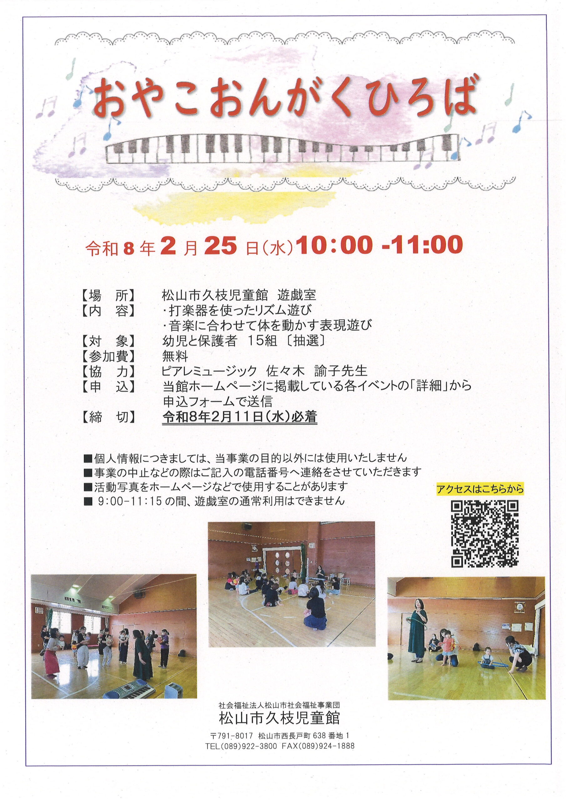 幼児とその保護者 15組(抽選)